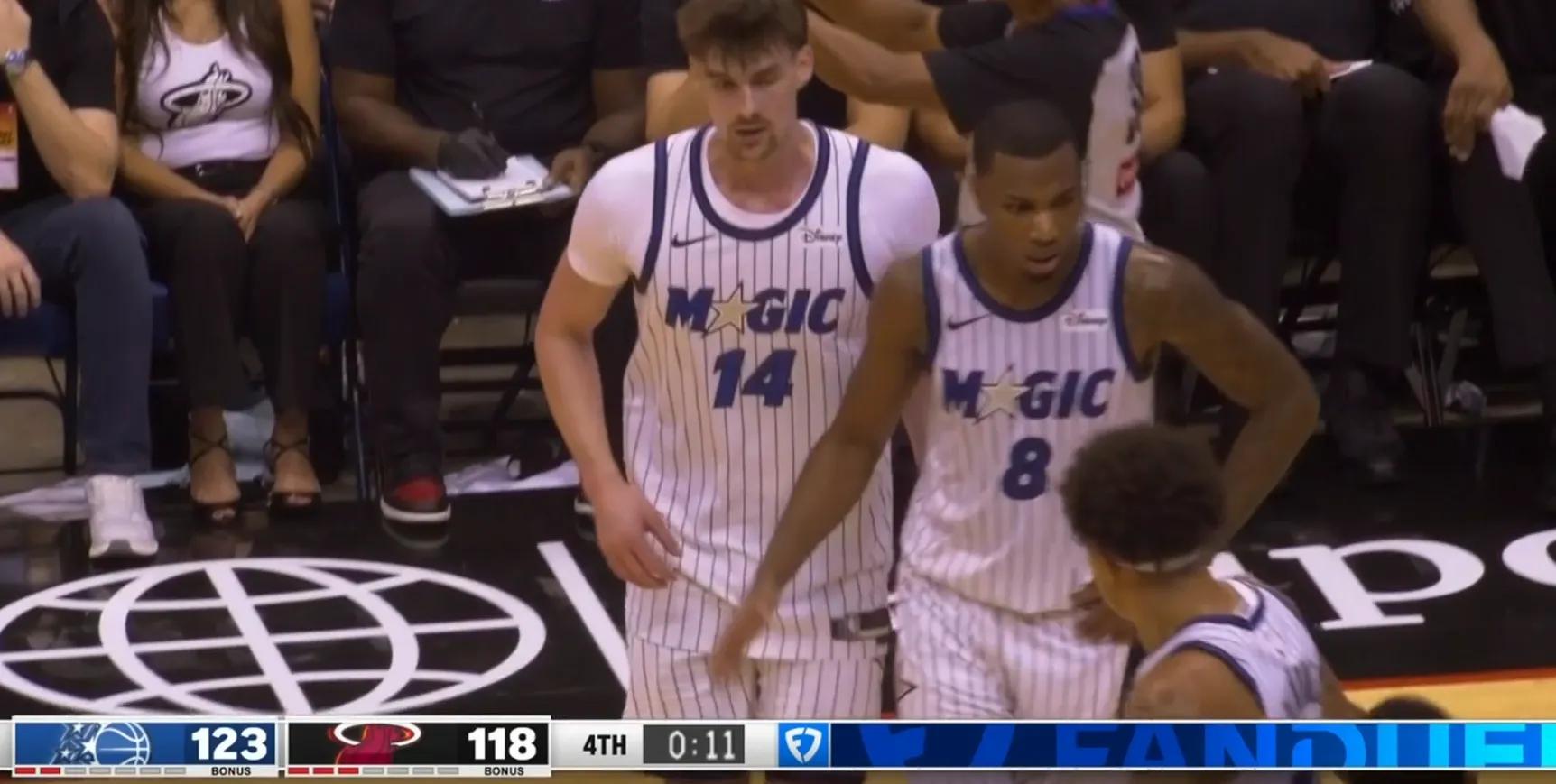 The Heat Wiggins, Powell and Jovic scored a 9-0 climax, especially Jovic fought hard against the basket, scored 2 points, and then made a long three-pointer. The Magic relied on Bain's three-pointer to fight back, and then the Magic Bane hit Jovic, suppressing the Heat's fast break firepower. The Heat were forced to call for a timeout. At this time, the Magic 43-51 Heat.
