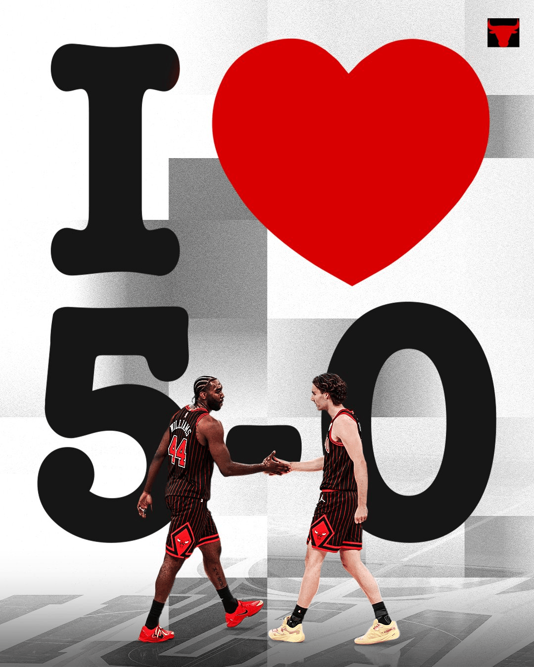 The Bulls officially revealed the team's first record in the Eastern Conference: We love 5-0, keep working hard.