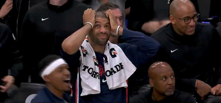 Harden's response was quite simple. He hit three three-pointers in a row, one of which was a super long shot just after halftime, igniting the home audience. The camera went to the bench, and Batum was shocked to see the same emoticon as Doudou.