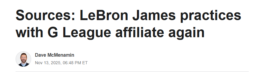 BasketballOn November 14, sources told ESPN that LeBron James trained with the South Bay Lakers of the Development League again today and did not show any residual discomfort after yesterday's training. This is a positive sign. After all, this is the firs...