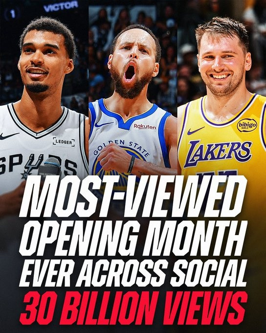 Official: NBA social media views exceeded 30 billion times in the first month of this season, setting a record!