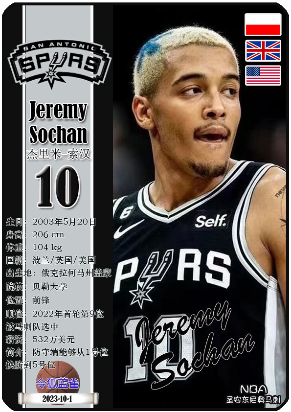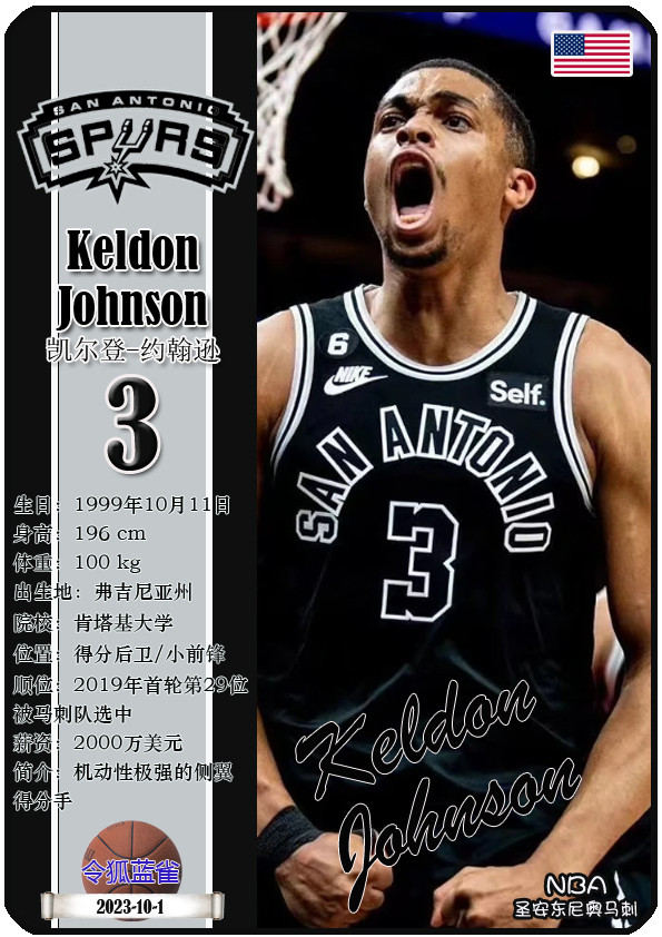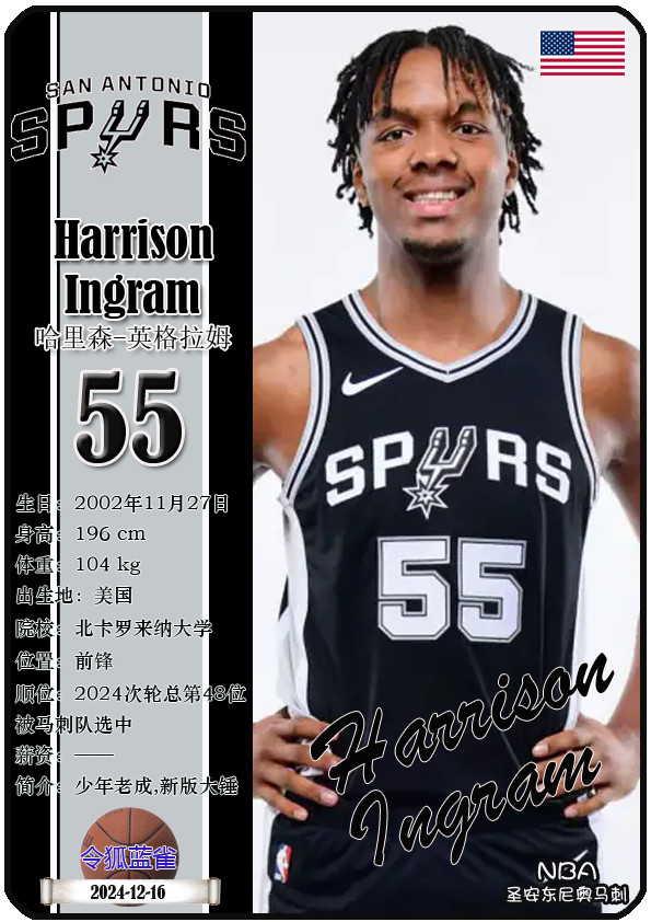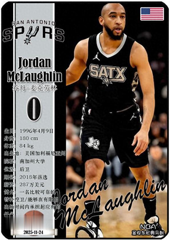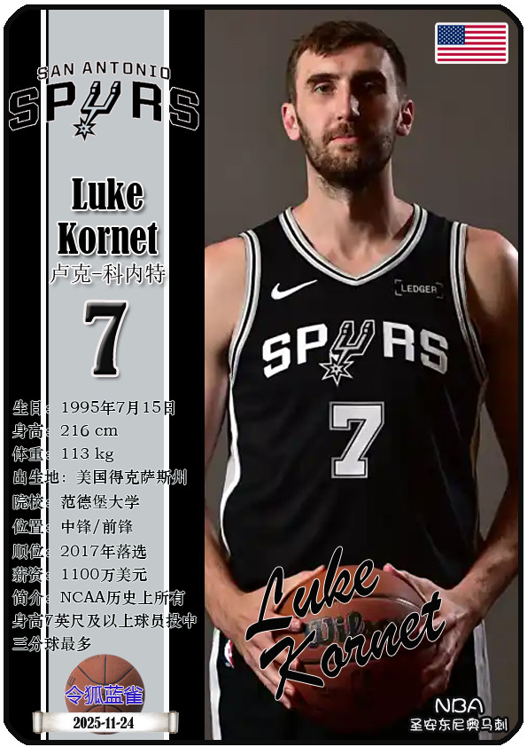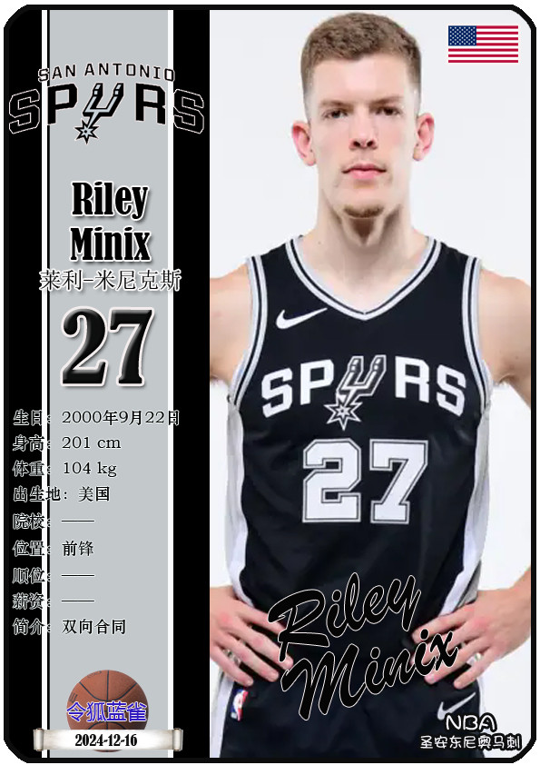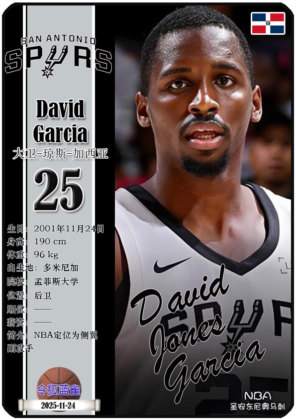 The Dallas Bushes, the predecessor of the NBA San Antonio Spurs, was founded in 1967 and has a history of 58 years. As of November 25, 2025, the team's head coach is Mitch Johnson, and the team has players De'Aaron Fox, Devin Vassell, Harrison Barnes, Victor Vunbanyama, etc. This issue shows the current 18 players of the NBA San Antonio Spurs in the form of star cards (sorted by jersey number):