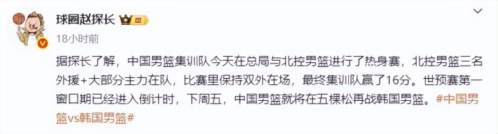 Although it is a closed game, the results and player data of this game have not been leaked. However, judging from some photos on the Internet, Guo Shiqiang is still relatively focused in employing people. In terms of the starting lineup, Zhou Qi became the starting center, with Zeng Fanbo at the fourth position, Zhu Junlong at the third position, and Zhao Rui and Hu Mingxuan in the backcourt. If nothing else, this lineup will also be the starting lineup of the Chinese men's basketball team against the South Korean team.