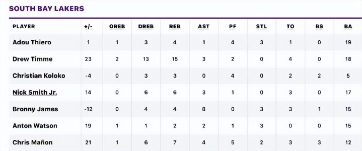 289 Sports > Basketball > The South Bay Lakers beat the Warriors and lost all 6 games: Bronny 15+8, Tierro 19 points, alley-oop dunks