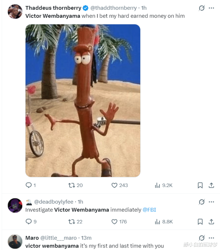 289 Sports > Basketball > The Spurs lost their first game! Wenbanyama scored 4 of 14 in the worst game, his scoring average dropped sharply, and his MVP ranking will plummet.