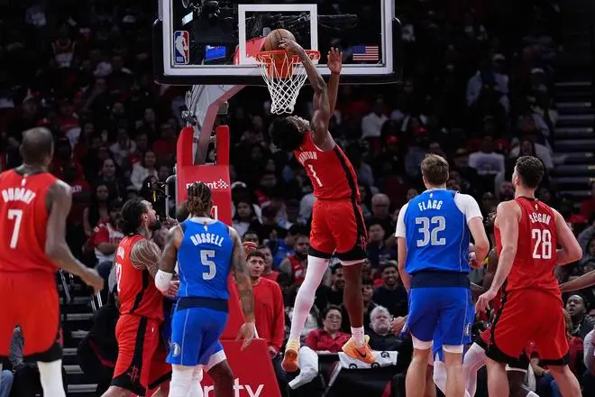 Capela's second attack started the fourth quarter, Gafford scored in counterattack, Ethan hit a three-pointer, Shepard succeeded in a single, and the Rockets led 89-80. Russell and Christie took turns to hit three-pointers. They led the team to a 10-2 counterattack, and the Mavericks chased to 90-91. Durant fired and scored two three-pointers in a row. The Mavericks showed no weakness. Washington scored 3 points and led the team to respond with 7 points. The two teams tied at 99. After the 101 tie, Shen Jing made two free throws, and then Shen Jing scored with a hook. The Rockets led 105-102 with 1 minute and 35 seconds left in the fourth quarter. Washington missed a three-pointer, Christie committed a defensive foul, Okogie made two free throws, and the Rockets led by 5 points. Russell missed a three-pointer, A-Thompson made one of two free throws, and the Rockets led 108-102 with 27.1 seconds left in the fourth quarter. Flagg barely made a three-pointer but was blocked by A-Thompson. Ethan dunked on a fast break. The Rockets won 110-102.