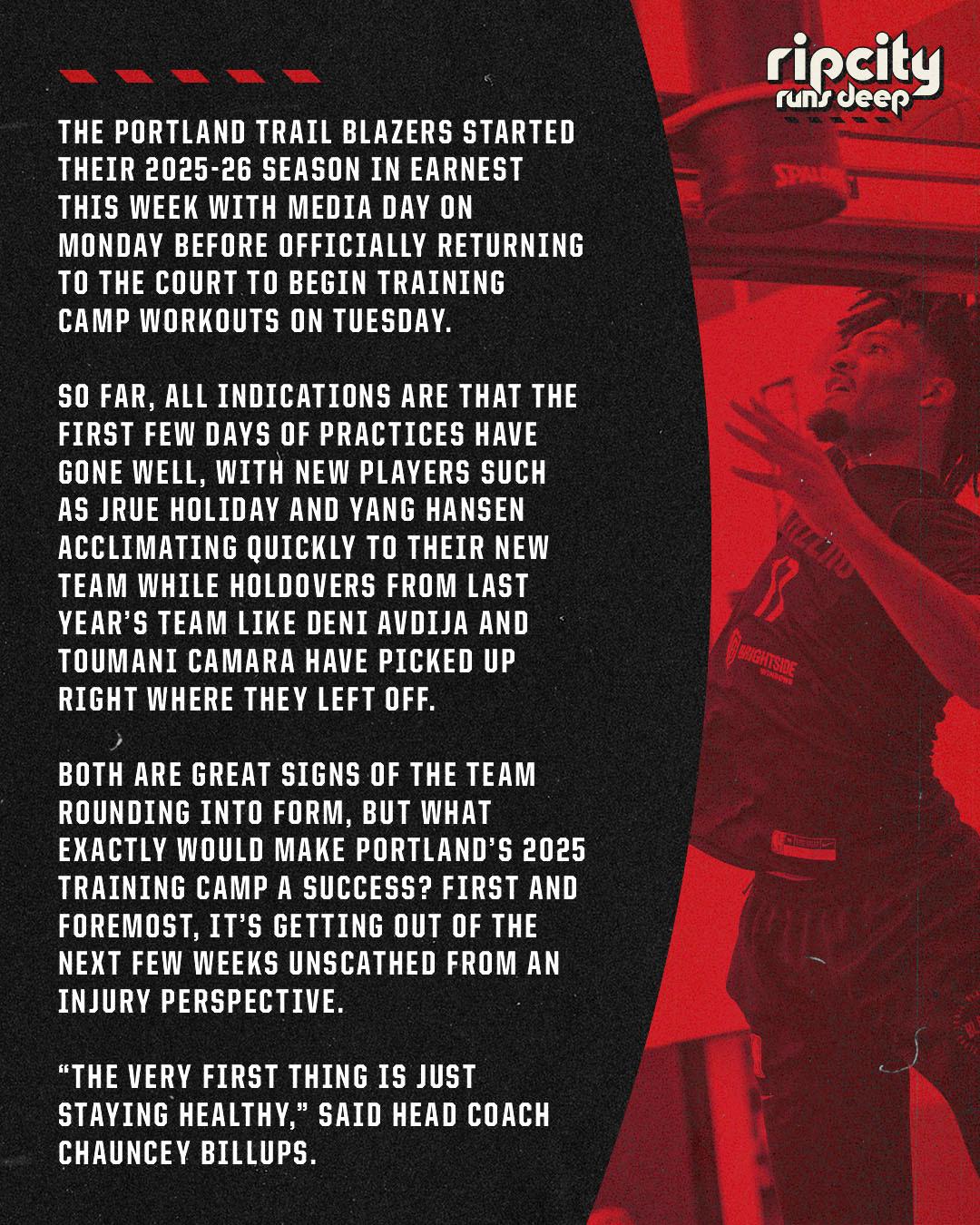 Trail Blazers ins released ins, saying that they will continue to make progress. Follow the report of Trail Blazers reporter @caseyholdahl to fully review the developments of the second day of the training camp.