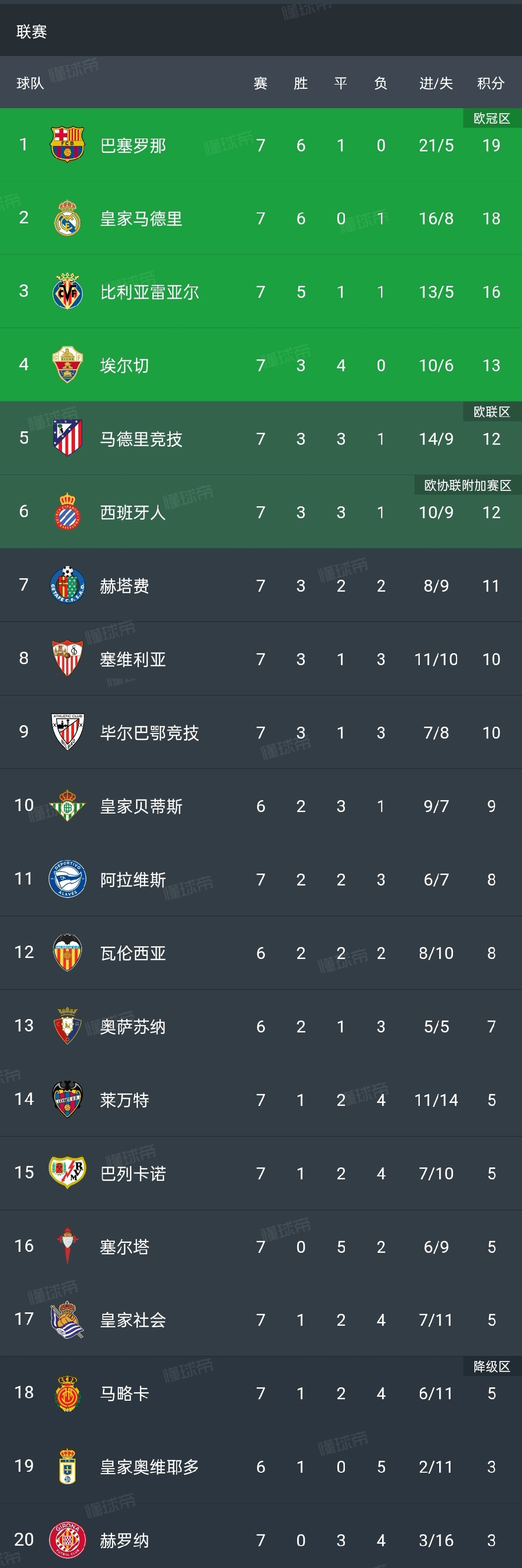 La Liga latest rankings are as follows: