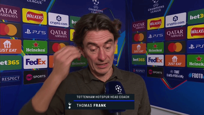 Hupu November 05 News: Tottenham Hotspur head coach Thomas Frank was interviewed by TNTSport after the 4-0 victory over Copenhagen.