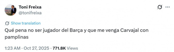 Freixa wrote: "I am very sorry that I am not a Barcelona player, even if I would be subject to Carvajal's little actions."