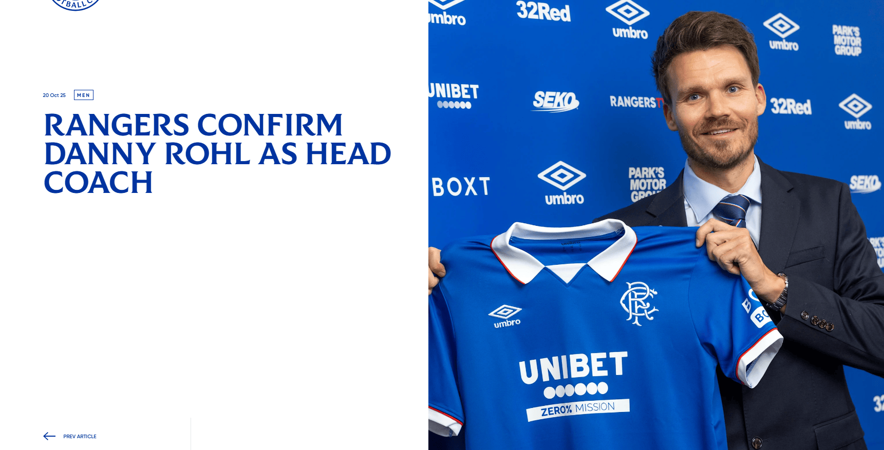 Hupu, October 20th: Glasgow Rangers officially announced that Danny Rohr has been appointed as the head coach of the men's first team.