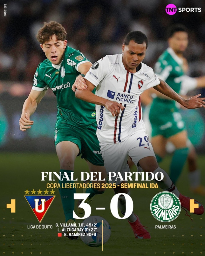 In the first leg of the Copa Libertadores semi-finals, Universidad Sport de Quito defeated Palmeiras 3-0 to take the lead