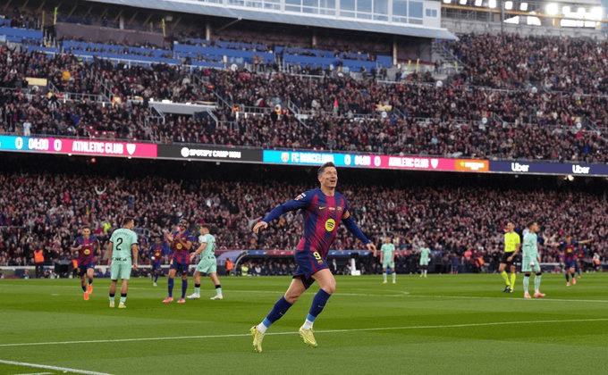 Hupu News November 22nd, in the 13th round of La Liga, Barcelona defeated Athletic Bilbao 4-0. Lewandowski opened the scoring for the team and scored the first goal back at Camp Nou.