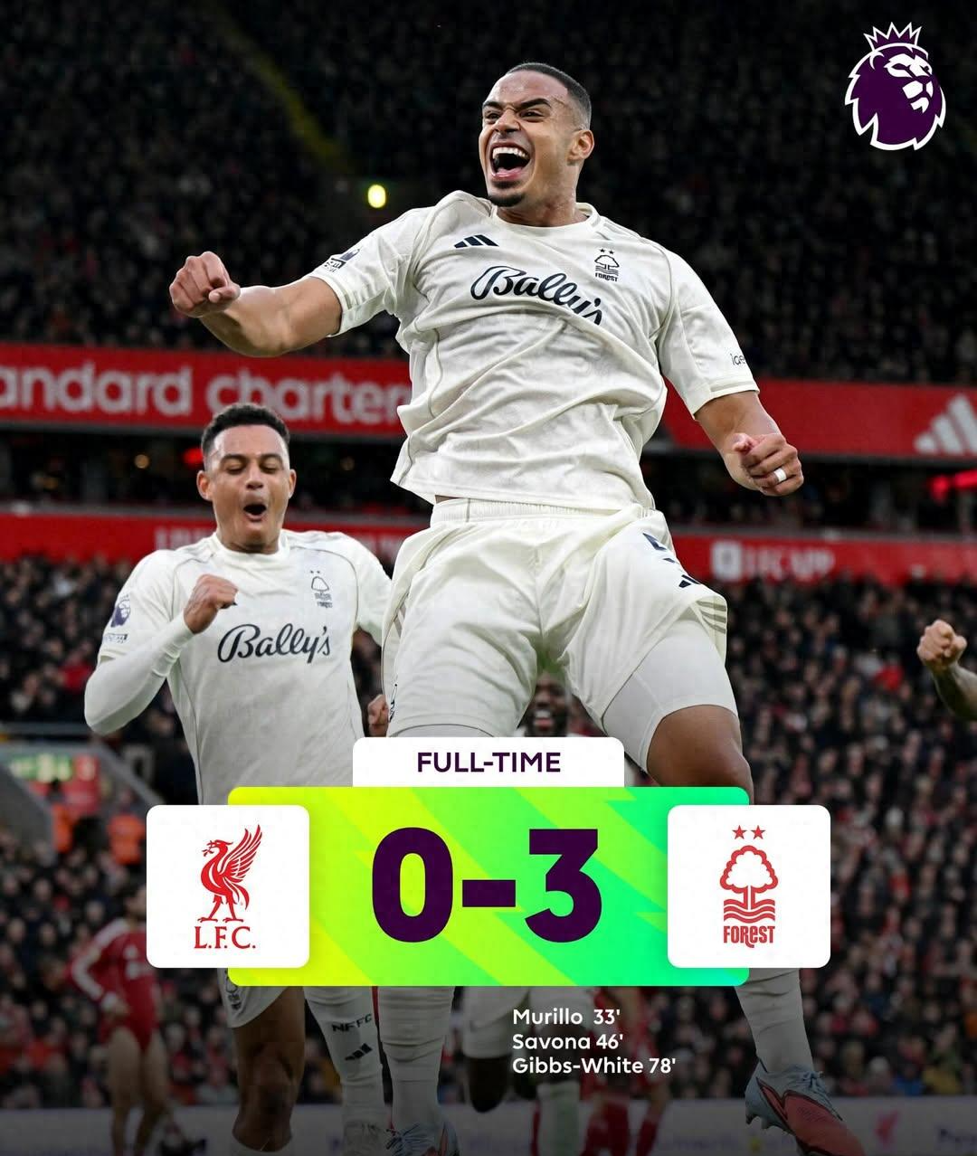The progress of the game can be called a disaster scene for Liverpool. In the first half, Murillo took a corner kick and scored with a volley to break the deadlock for Nottingham Forest. Just 39 seconds into the second half, Savona's goal gave the Reds a fatal blow, and then Gibbs White's supplementary shot completely sealed the victory. Throughout the game, Liverpool had the advantage in possession of the ball but could not break through the dense defense of their opponents. The chaos and fragility on both ends of the offense and defense were fully exposed. In the end, they suffered a tragic defeat in the silence of the home fans.