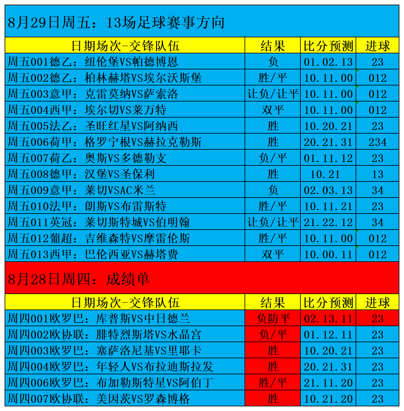 [Migo Sports | Heart Reference] Friday, August 29: [Analysis of 13 football match directions]