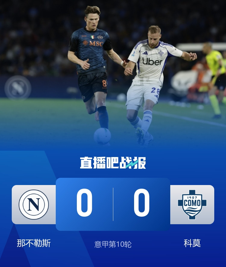November 2nd at 1:00, the 10th round of Serie A between Napoli and Como started at the Maradona Stadium! In the first half, Kempf was injured by his own player and retired early. In the second half, neither side achieved anything.