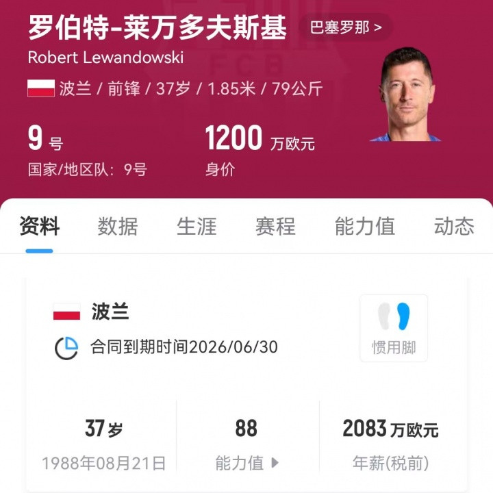 September 30th: Lewandowski, currently 37 years old, has entered his final year of contract with Barcelona and will expire on June 30, 2026.