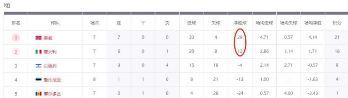Then look at Group I. Previously, the Norwegian team ranked first with 18 points, 3 points ahead of the second-placed Italian team. In the 7th round, the Norwegian team played against Estonia at home. The two teams were clearly strong and weak, and there was not much suspense. , during the game, the Norwegian team was full of firepower. Top star Haaland scored 2 goals in a row, Serlot scored 2 goals each, and the opponent got 1 goal back. In the end, the Norwegian team defeated Estonia 4-1, and the Italian team defeated Moldova 2-0 away from home. In this case, Norway is first with 21 points and Italy is second with 18 points. There is only one round left. Although in theory the Italian team has the possibility of overtaking, in fact the Norwegian team leads by 17 goals. It is impossible for the Italian team to defeat the Norwegian team with a score of more than 17-0 in the last round, so the Norwegian team actually qualified for the World Cup one round in advance.