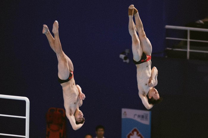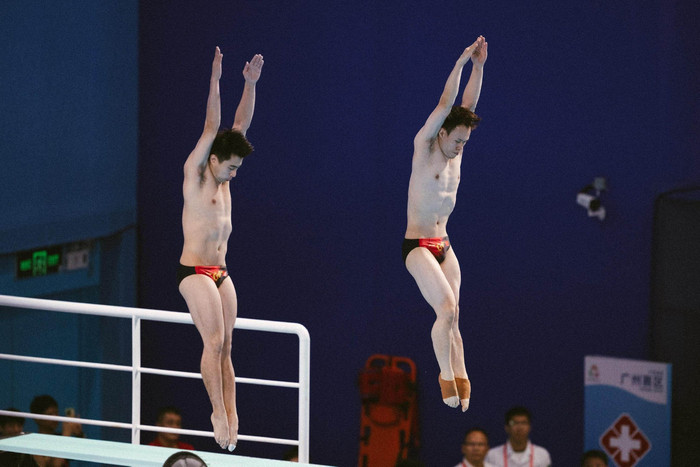 It is worth mentioning that in the men's team competition on the 3rd, the two also partnered to participate in the men's team synchronized 3-meter springboard competition, which injected strong impetus into the Guangdong team's competition in the team event, and ultimately helped the Guangdong team win the men's team championship and achieve eight consecutive championships. From the team competition to the doubles individual events, the two quickly switched states and continued to produce stable output, which not only demonstrated their solid technical skills, but also demonstrated the consistent competitive heritage of the Guangdong Diving Team.